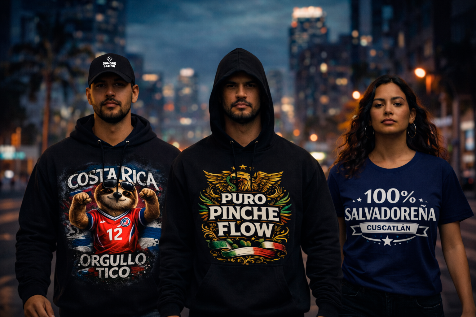 Diseños inspirados en nuestras raíces, hechos para llevar orgullo latino en cualquier parte del mundo.